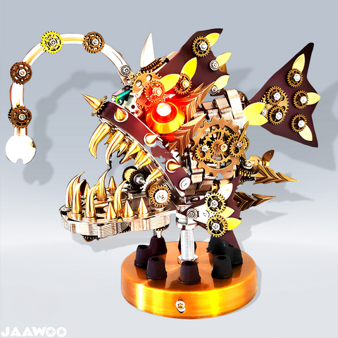 3D Metal Steampunk Craft Puzzle Mechanical Anglefish Model DIY Assembly with Luminous Bulb Creative Gift-1064PCS+