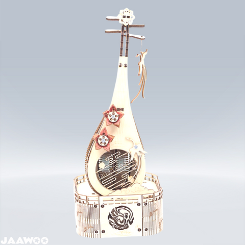 3D Wooden Music Box Puzzle Mechanical Lute Model Wooden Kit Desktop Ornament
