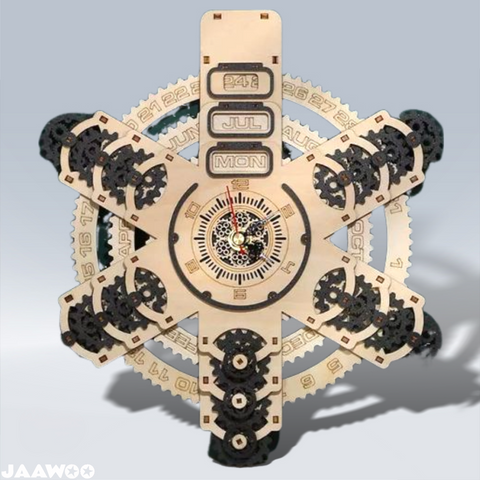 3D Wooden Wall Clock Puzzle DIY Mechanical Quartz Kit Calendar Model Home Decor